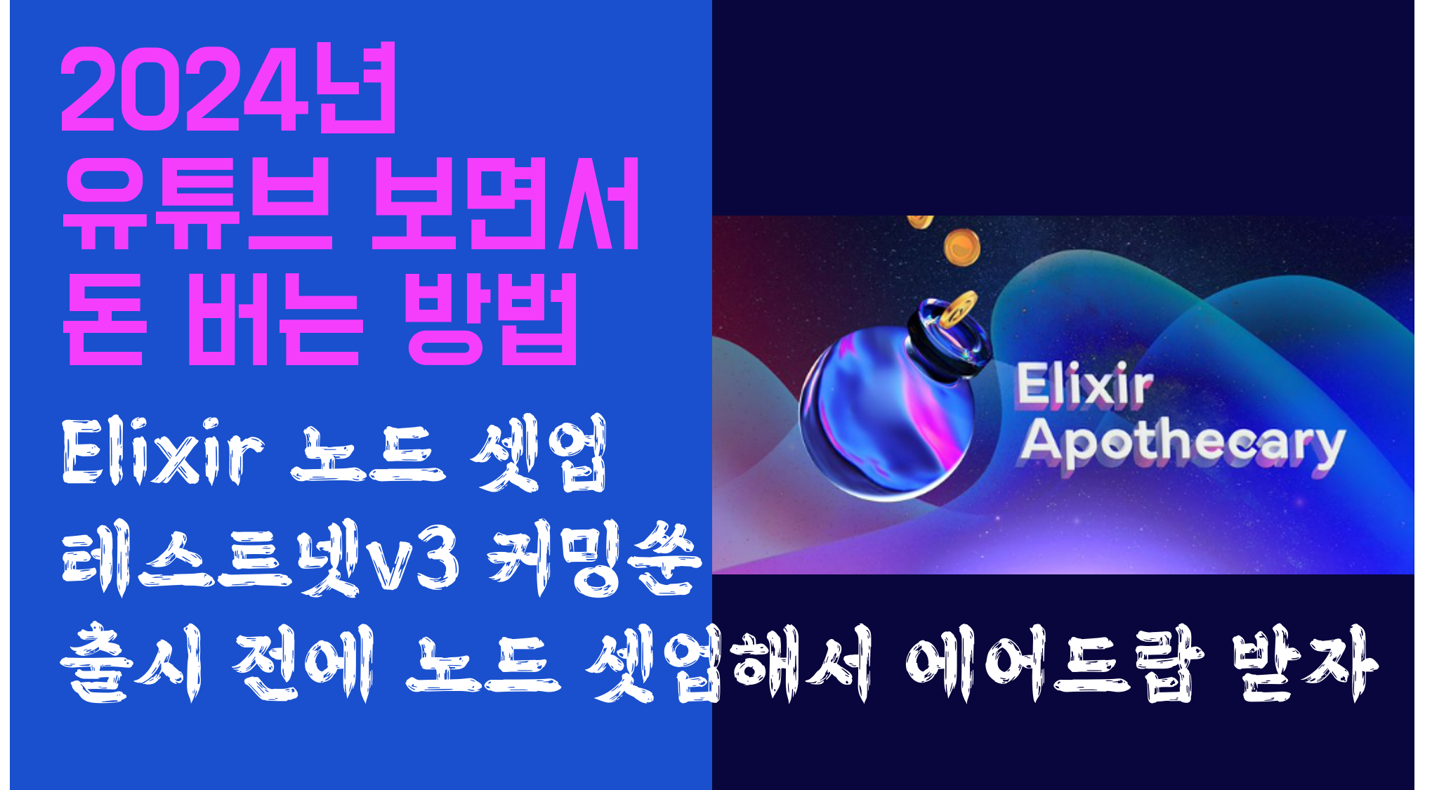 안녕하세요! 랜과장입니다. 제가 노드를 운영하고 있는 프로젝트 중에 Elixir가 있는데, 최근에 새로운 소식이 있어서 포스팅하게 되었습니다. 최신소식부터 에어드랍, 노드운영 방법까지 모두 있으니 블로그 구독해주시고, 유튜브 영상도 꼭 시청해주시기 바랍니다.